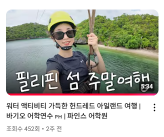 주말이 기다려지는 어학연수, 워터 액티비티 천국 헌드레드 아일랜드 [출처: 모나로그 Monalogue]바기오 헌드레드 아일랜드 일과 삶의 균형(워라밸)을 넘어, 공부와 여행의 균형(학행밸)을 실행평일에는 몰입형 영어 수업으로 자기계발에 집중하고, 주말에는 이국적인 섬으로 떠나 완벽하게 리프레시를 누릴 수 있습니다.바기오 어학연수를 통해 헌드레드 아일랜드에서 즐기는 짜릿한 주말 여행!!! #필리핀어학연수 #필리핀 #어학연수#바기오어학연수 #필리핀어학연수 #어학연수브이로그 #바기오브이로그 #바기오 #바기오파인스 #파인스 #필리핀브이로그 #필리핀 #어학연수 #바기오일상 #파인스어학원